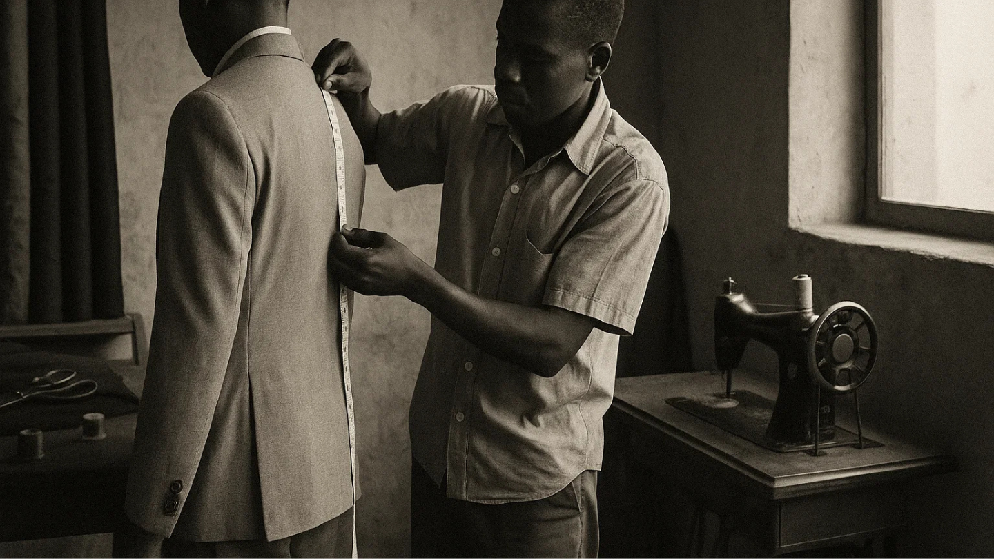 The roots of Soule Saka trace back to Burkina Faso, where tailoring was not merely a profession but a responsibility. Under the guidance of master tailor Thomas Sankara, the craft was passed down not as a trade for recognition, but as an expression of trust, discipline, and pride.