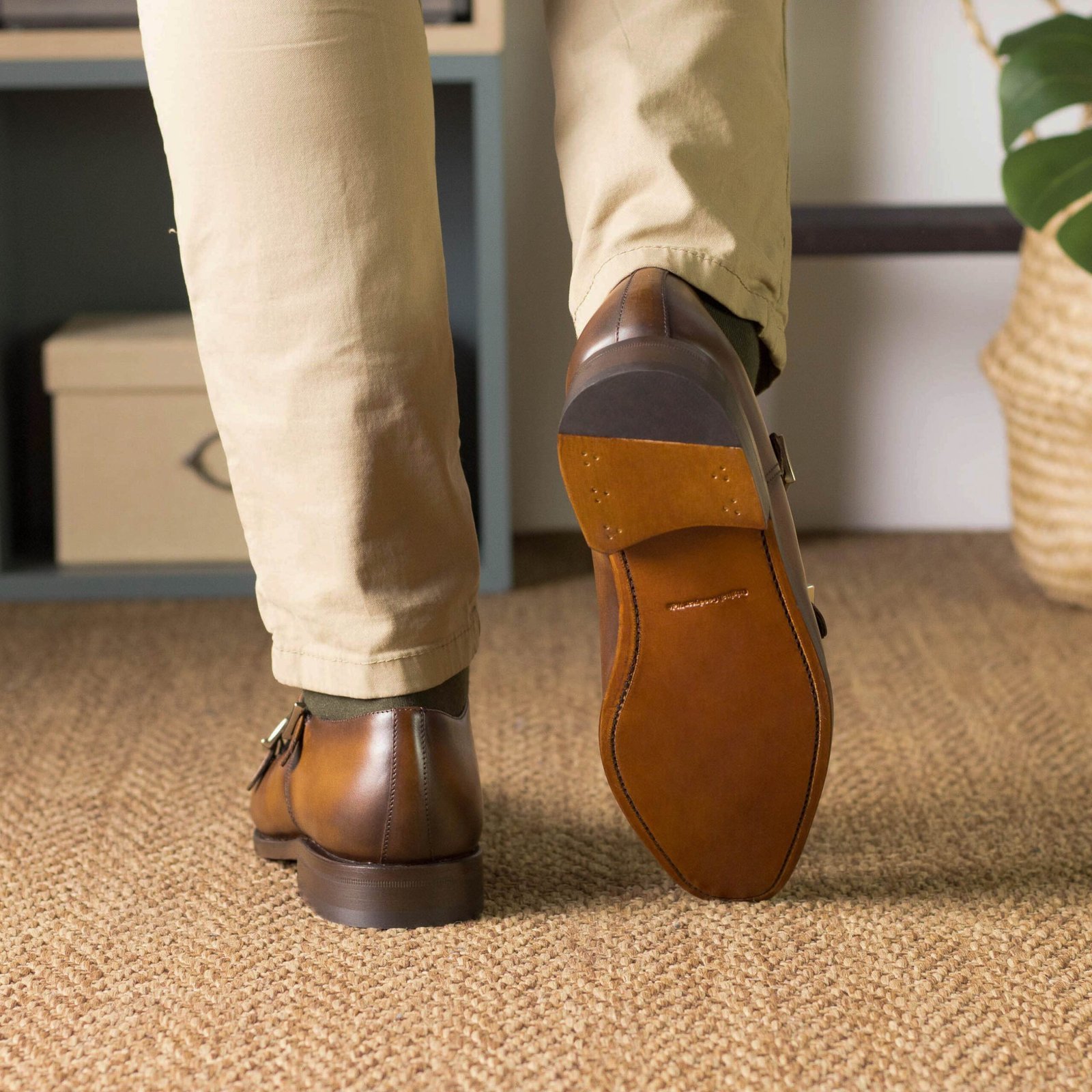 Each pair of our Modern Double Monk Cognac Leather Shoes is meticulously handcrafted, requiring 2 to 4 weeks for production and shipping. This process ensures that every detail is perfect, from the stitching to the finish, delivering a product of superior quality and style.
