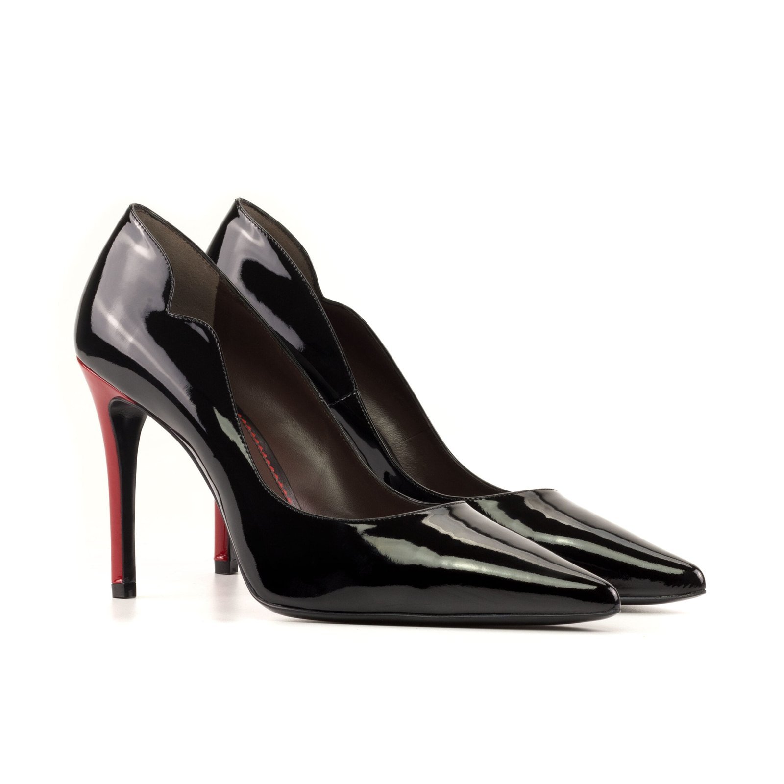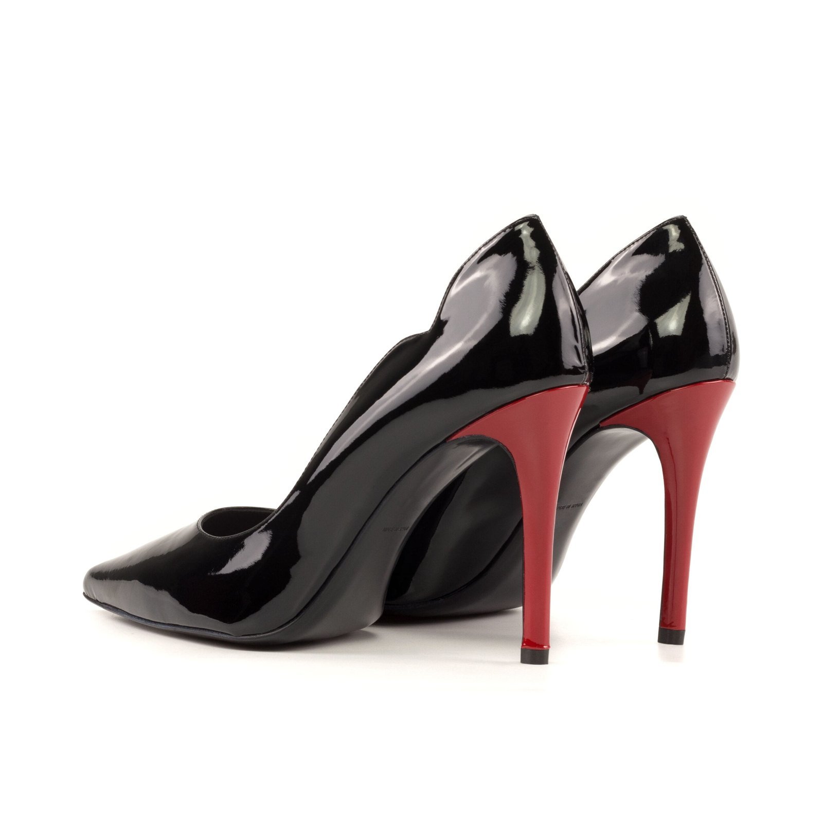 Step into elegance with our Women’s Genoa heels, crafted from passion red and luxury black super soft patent leather with a luxury black nappa kaiser lining. Designed with a beautiful pointy toe and finished with a thin stiletto or block heel, these heels effortlessly elongate your legs for day and night occasions. Handcrafted from genuine leather, each pair is made to order for superior quality and a perfect fit. Please allow 2 to 4 weeks for production and shipping, ensuring luxury and style in every step.